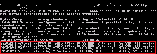hydra -l "usuario" -P "listaPasswords.txt" ssh://sftp.dominio.com